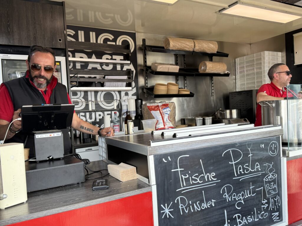 さらに、地元バイエルンのグルメを楽しめるキッチンカーが並び、まるでオクトーバーフェストのような賑わいの中、ALPINA談義とともに歓談のひとときが流れていました。